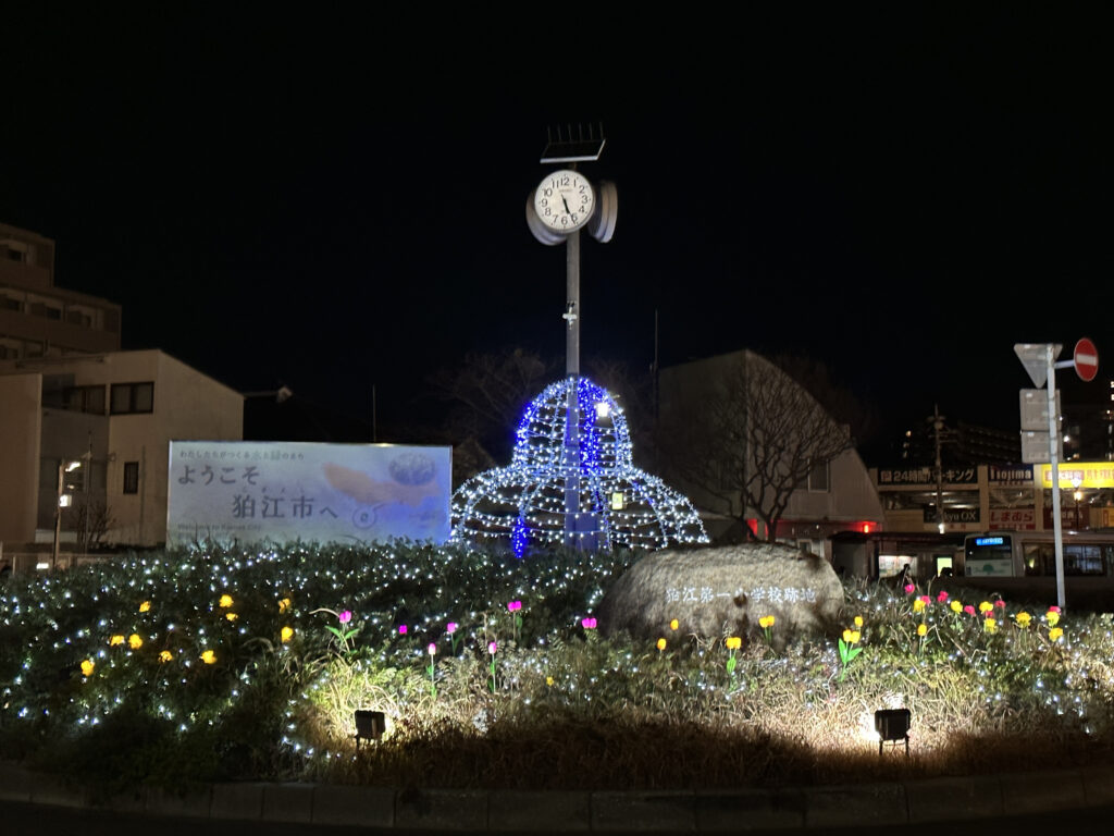 狛江駅に着いたらポッとあたたまるような灯りを点灯しました。北口側も、南口側も、どちらもあたたかい気持ちになってもらえることを願います。